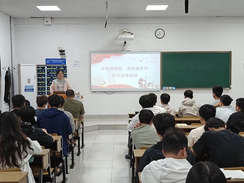 为深入学习贯彻习近平强军思想,落实相关应征入伍工作要求,帮助学生全面了解征兵政策,引导大学生积极响应国家号召投身军营,计算机与软件学院于5月24日举办“青春献国防,共筑强军梦”征兵宣讲活动。
