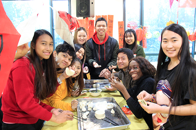 为了让来自不同国家的外国留学生们感受中国传统节日的氛围,体验春节的喜庆,华体会在线登录官网于2019年1月26日在教工餐厅举行了外国留学生“欢聚南工院,品味中国年”迎新春活动,副校长霍雄飞,国际教育学院全体教师、班主任代表、宿管阿姨和寒假留校的八十余名外国留学生欢聚一堂,一起包饺子、写春联、送福字、挂灯笼,喜迎猪年新春佳节。