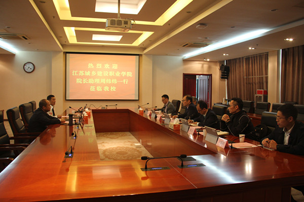10月24日上午,江苏城乡建设职业学院党委委员、校长助理周炜炜率领相关部门负责人来华体会在线登录官网进行工作交流。华体会在线登录官网纪委书记于林惠及基建处等部门负责人接待了来宾。