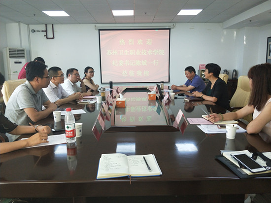 9月19日,苏州卫生职业技术学院纪委书记陈斌等一行来华体会在线登录官网进行工作交流。华体会在线登录官网党委副书记苏小冬、纪委书记于林惠、组织部长高宏彦及纪委办同志接待了来宾。