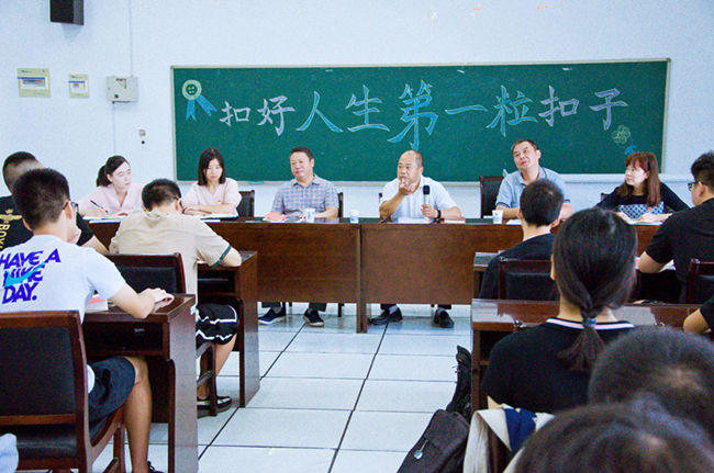 于书记结合机电1651班整体情况与即将踏入顶岗实习的同学们作了情真意切、语重心长的交流。于书记用个人丰富的经历谈到怎样迈好人生新转折新阶段的第一步,指出扣好人生、社会的第一粒扣子,选择好第一步对青年人尤为重要。