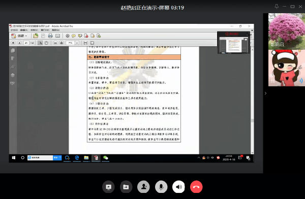 4月16日赵艳启对学院三支参赛团队进行线上指导,她逐一审查参赛团队的申报材料,本次申报材料包括专业人才培养方案、课程标准、参赛教案及教学实施报告,并对各申报材料提出指导意见。