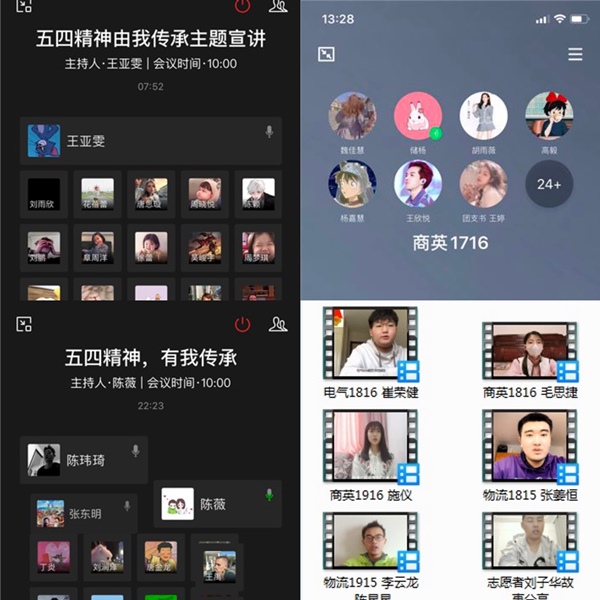 近期,国际教育学院开展“五四精神 传承有我”主题宣讲活动。商英1716,商英1816,机自1816班级使用企业微信语音通话方式进行本次宣讲,积极宣传“五四精神”和学院防疫志愿者的典型事迹。商英1916、物流1915、电气1916、电气1816、商英1816、物流1815班级采用视频录制的方式向班级同学宣扬五四精神。电气1916刘子华同学以精彩短视频的呈现向同学们分享自己在陈楼镇大孙村委会的抗疫故事。