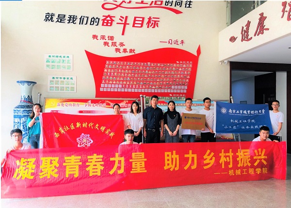 为引领广大青年学生深入学习贯彻习近平新时代中国特色社会主义思想,特别是习近平总书记关于青年工作的重要思想,扎根中国大地了解国情民情,通过社会实践坚定理想信念、站稳人民立场、练就过硬本领、投身强国伟业,机械工程学院师生于7月13日前往南京市江宁区西岗村开展了“凝聚青春力量,聚力乡村振兴“为主题的暑期社会实践活动。