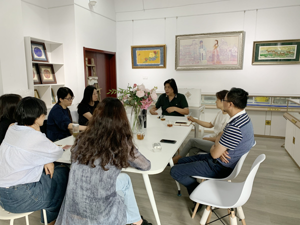 开学第一周,艺术设计学院专门召集教学部主任召开科研工作会议,要求每个教学部要成立以博士与高级职称教师领衔的科研创新团队。9月11日下午室内设计专业的"非遗文创科研创新团队"与华体会在线登录官网“金文云锦大师工作室”进行交流座谈,主要围绕人才培养,课程规划,项目合作与大赛指导进行了深度探讨,并初步确定了近期要开展的相关合作事宜,双方一致同意将围绕"南京云锦"开展系列专场讲座、师生实操能力培训、项目合作等各项对接工作。