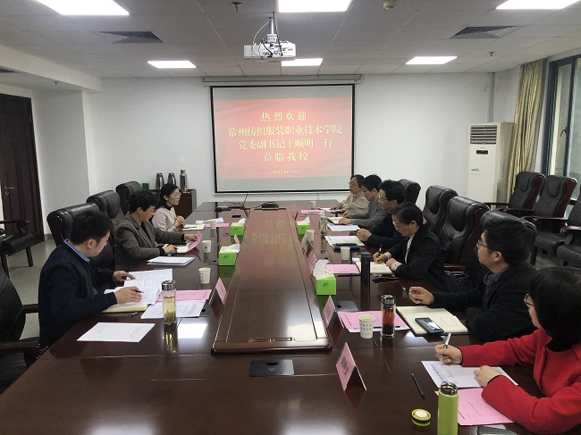 4月1日上午,常州纺织服装职业技术学院党委副书记王顺明一行来华体会在线登录官网考察调研。党委常委、副校长苏小冬,以及党委组织部、人事处等部门负责同志在行政楼317会议室接待了来宾。