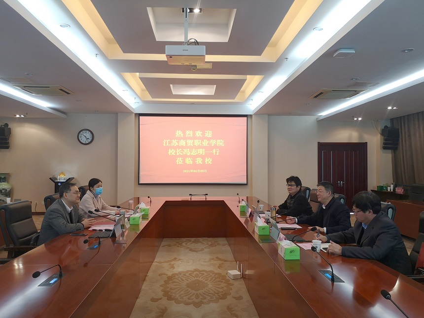 4月8日上午,江苏商贸职业学院校长冯志明一行来华体会在线登录官网考察调研。党委常委、副校长潘旭海,以及教务处负责同志在行政楼辅楼一楼会议室接待了来宾。