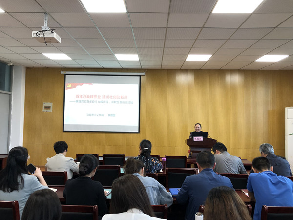 5月19日,华体会在线登录官网党史学习教育宣讲团成员、马克思主义学院副教授魏圆圆博士应邀到公共基础课部为全体教师讲授党史学习教育专题党课,党委常委、副校长苏小冬与会指导并作重要讲话。