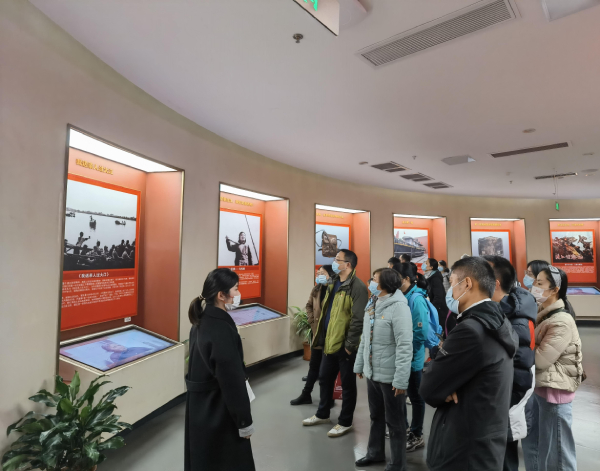 渡江胜利纪念馆位于长江与秦淮河交汇的三汊河口,是南京市“十大红色文化地标”之一,由两个主展馆、下沉式广场以及胜利纪念馆广场构成。在馆内讲解员的带领下,党员们依次参观了“天翻地覆慨而慷——渡江战役胜利暨南京解放展”和“人间正道是沧桑——中国共产党南京历史展”两个展馆。