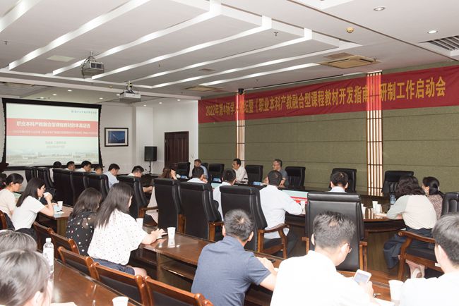 聚焦“职业本科产教融合型课程教材开发”主题,校党委副书记、二级研究员马成荣作了专题报告。他以“职业本科产教融合型课程教材的本真话语”为题,系统阐述了职业本科产教融合型课程教材开发的逻辑依据、基本概念和原则方法,并就开发指南研制工作进行了部署和安排。