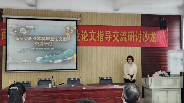 此次活动主讲人为商务贸易学院国际经济与贸易系骨干教师刘畅唱副教授。刘畅唱老师是南京大学博士、《外国经济与管理》《南大商学评论》等CSSCI刊物审稿人、2019年“《南大商学评论》优秀审稿人”、2021年江苏省优秀毕业论文一等奖指导老师。她从对本科毕业论文“学生难写、老师难教”的“两难”根源探讨出发,围绕“写什么?”(职本论文选题)、“如何写?”(论文结构和内容)、“如何导?”(指导老师的作用)等方面展开报告,并就职教本科毕业论文指导和改革创新与现场的教师们做了深度互动与交流。
