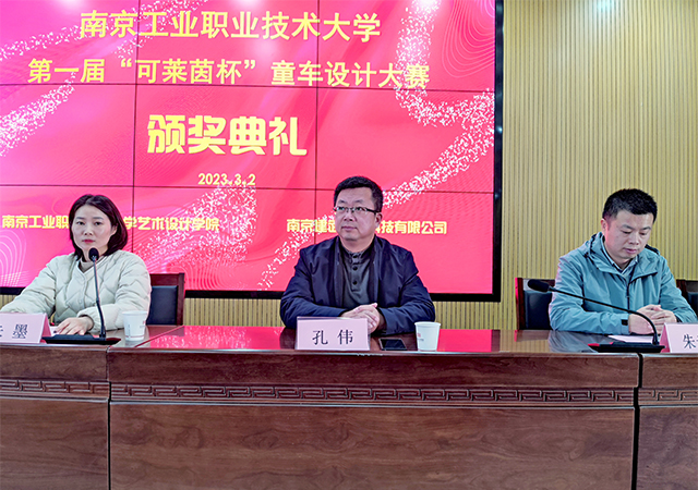 为推进产教融合,深化校企合作,华体会在线登录官网艺术设计学院与南京建武电子科技有限公司联合举办了首届“可莱茵杯”童车产品创意设计大赛,学院将大赛融入实训项目教学,为企业开发了一批高质量的童车设计方案,受到企业的高度认可。经校企专家评审,评选出一、二、三等奖6名,优秀奖15名,优秀指导教师2名。3月2日下午,校企双方在天堂校区综合楼六楼报告厅隆重举行了大赛颁奖典礼,艺术设计学院院长孔伟、南京建武电子科技有限公司总经理朱墨以及学院师生代表参加了此次典礼。
