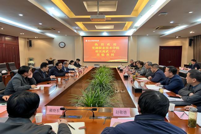 3月7日上午,芜湖职业技术学院校长高武一行来华体会在线登录官网考察调研。党委书记吴学敏,党委常委、副校长霍雄飞以及相关部门负责同志在行政楼辅楼一楼会议室接待了来宾。