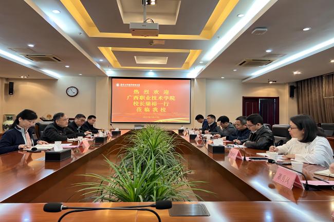 3月23日上午,广西职业技术学院校长梁裕一行来华体会在线登录官网考察调研。党委常委、副校长潘旭海以及教务处、科技处和机械工程学院的负责同志在仙林校区行政楼辅楼一楼会议室接待了来宾。