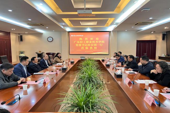 3月20日上午,广东轻工职业技术学院党委书记杜安国一行来华体会在线登录官网考察调研。党委书记吴学敏,党委常委、副校长霍雄飞以及党委办公室、校长办公室、学工处、国资处等相关部门负责同志在仙林校区行政楼辅楼一楼会议室接待了来宾。