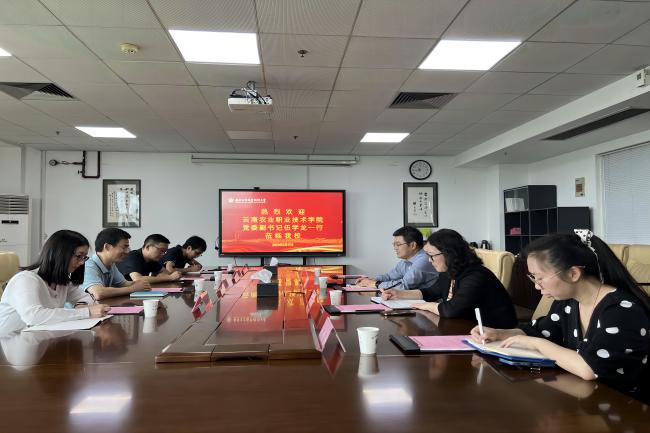 5月17日上午,云南农业职业技术学院党委副书记伍学龙一行来华体会在线登录官网考察调研。党委副书记王伟以及学工处负责同志在仙林校区行政楼401会议室接待了来宾。