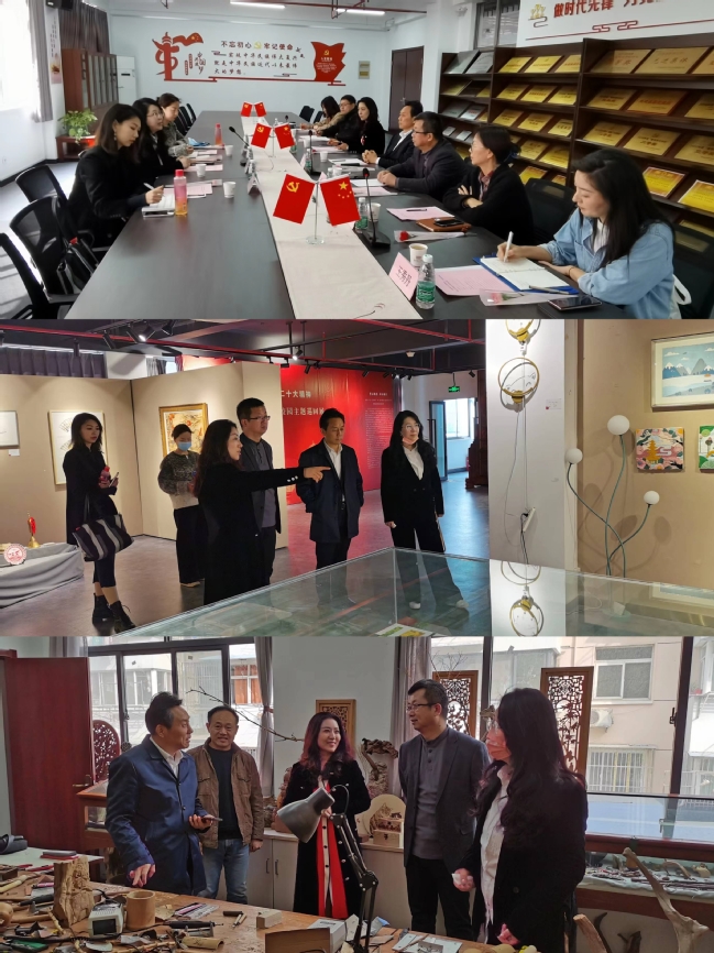 两周后,殷伊玲执行长带领德基文化产业南京有限公司CCIP文创研究中心团队到学校天堂校区走访,马书记和艺术设计学院领导班子陪同参观了学院教学工作室、閤一美术馆、艺术工坊等教育教学场所。殷伊玲对学校的职业育人氛围留下了深刻印象,她表示未来文化创意领域十分需要高等职业教育培养的人才,希望能与学校一同培养创新水平高、实践能力强的艺术设计人才。