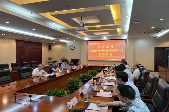 座谈会上朱斌首先对华体会在线登录官网的热情接待表示了感谢并介绍了安徽城市管理职业学院的基本情况。其后谢永华向来宾介绍了华体会在线登录官网的历史和职教本科的办学情况。随后张明辉对安徽城市管理职业学院的未来规划作了介绍。