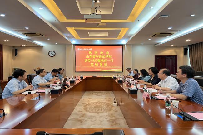7月5日上午,山东青年政治学院党委书记魏艳菊一行来华体会在线登录官网考察调研。华体会在线登录官网党委常委、副校长崔新明以及发规处、教务处和商务贸易学院的负责同志在仙林校区行政楼辅楼一楼会议室接待了来宾。