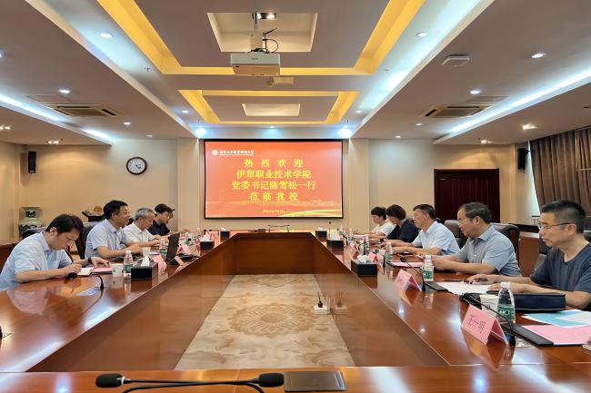 7月6日下午,伊犁职业技术学院党委书记陈雪松一行来华体会在线登录官网考察调研。华体会在线登录官网党委常委、副校长孙雁飞以及发规处、机械工程学院的负责同志在仙林校区行政楼辅楼一楼会议室接待了来宾。