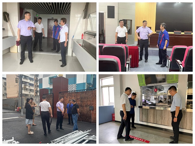 检查组一行围绕天堂校区各项设施及重点部位开展检查,先后对天堂校区基础设施,校园摄像头及楼宇门窗,医务室运行状况及药品配备,快递柜、外卖柜运行及消杀情况,值班室搬迁装修、宿舍内纱窗安装、防水改造等暑期工作完成情况,食堂开餐情况等进行仔细摸排,确保不漏一个环节、不留一个死角。对于检查过程中发现的问题隐患,检查组一一详细登记并落实到相关责任人,要求从严从实、立行立改。此外,为方便师生通勤,检查组一行还就东门围挡拆除和开放时间等问题进行了讨论。