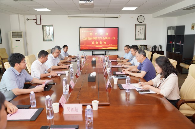 9月18日下午,江西省高等教育学会副会长兼秘书长、江西省教育厅副总督学肖德征一行来华体会在线登录官网考察调研。学校党委副书记、校长谢永华,党委常委、副校长潘旭海以及教务处、科技处的负责同志在仙林校区行政楼401会议室接待了来宾。
