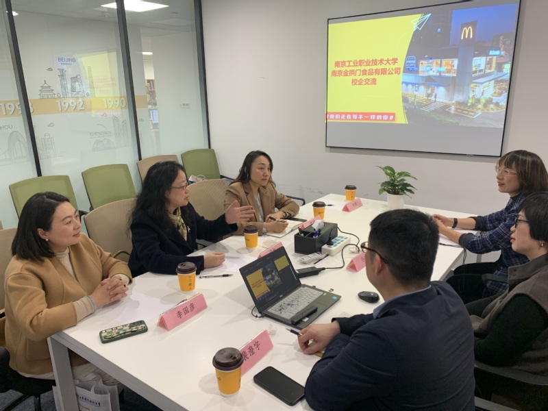 为进一步推动校企协同育人和毕业生就业工作,11月21日上午,经济管理学院副院长许虹,党委副书记、副院长常敏,工商管理系主任李国彦等教师代表一行4人走访调研南京金拱门食品有限公司,与该公司江苏市场高级人力资源经理许琳、江苏市场高级招募顾问裴澄宇进行座谈。