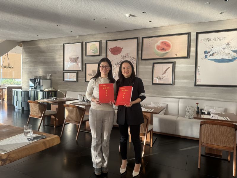 徐洪波介绍了学院旅游管理专业人才培养模式,并表示希望进一步加强校企合作,共同推动人才培养质量的提高。许虹提出在校企合作上发挥各自的优势特色,促进学生把理论知识和实践能力融为一体。常敏介绍了学院2024届毕业生情况并希望校企联动共同促进学生高质量就业。祝晔代表学院与企业签订就业基地协议书。