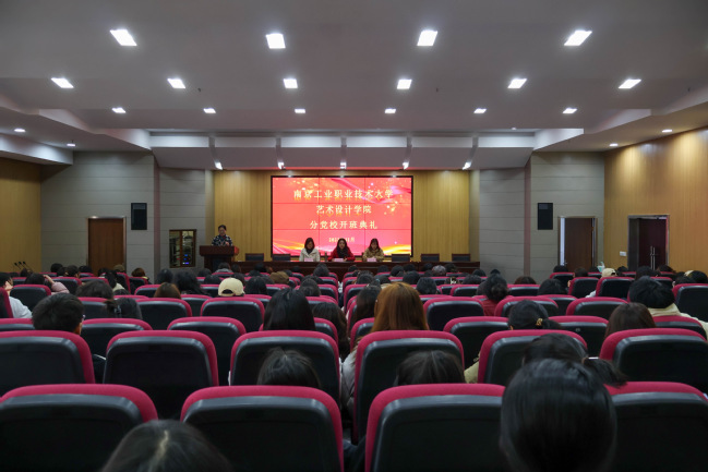 开班典礼在庄严的国歌中拉开序幕,靳喆宣读《中共南工艺术设计学院分党校章程》。