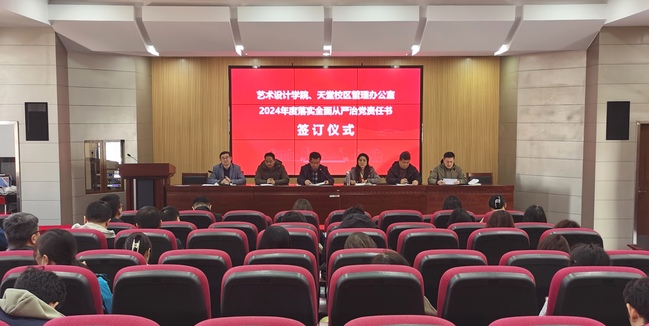 3月20日下午,艺术设计学院在天堂校区六楼报告厅召开2024年度全面从严治党暨工作责任书签署大会。艺术设计学院、天管办全体教职工参加大会,会议由学院院长、天管办主任孔伟主持。