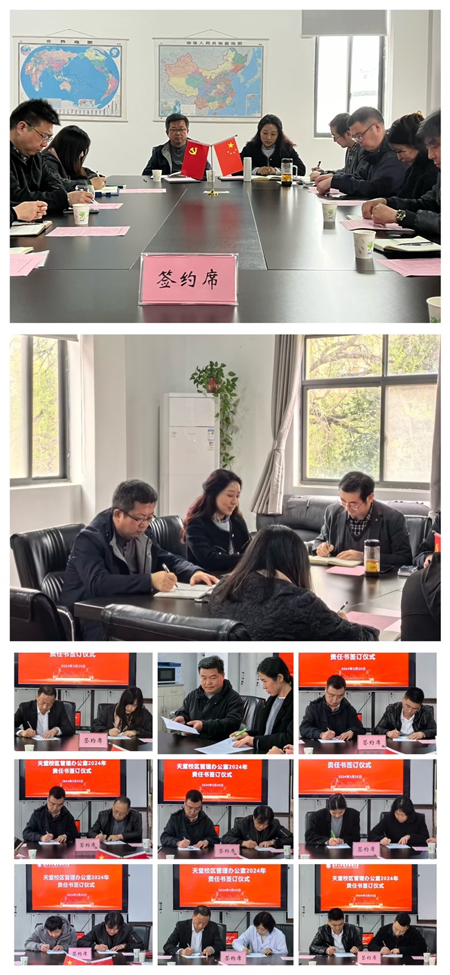 3月25日下午,天堂校区2024年度乙方托管服务单位安全稳定责任书签订仪式在天堂校区管理办公室二楼会议室举行。艺术设计学院、天管办领导班子部分成员出席会议。会议由艺术设计学院院长、天管办主任孔伟主持。