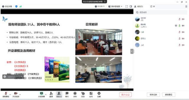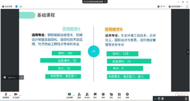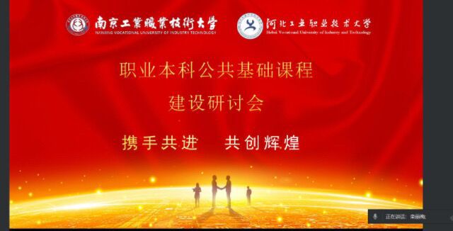 3月29日下午,华体会在线登录官网公共基础课部与河北工业职业技术大学基础教学部开展了职业本科公共基础课程建设研讨会。河北工业职业技术大学基础教学部主任郑瑞芝、副主任刘娟音、数学教研室主任李娟、英语教研室主任栾丽梅,及华体会在线登录官网公共基础课部主任金跃强、副主任江颖、大学英语教研室主任史其慧、大学数学教研室副主任王玲参加了在线研讨会。双方围绕职业本科数学、英语学科的课程体系设置,师资队伍建设、教材建设、在线资源假设、科研工作、学生升学与考级等方面开展了交流讨论。