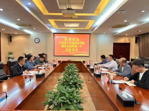 4月18日上午,江苏电子信息职业学院党委委员、副校长杨明刚一行来华体会在线登录官网考察调研。华体会在线登录官网党委常委、副校长苏小冬在行政楼辅一楼会议室接待了来宾。