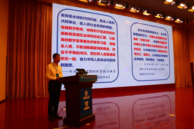 孙雁飞以《数字化背景下职业院校境外办学的探索和实践》为题作报告,他指出,学校通过数字化赋能境外办学资源建设,开发数字化多层次的立体式教学资源,服务国际产能合作和中国企业走出去,培养国际化人才和中资企业急需的本土技术技能人才,解决“一带一路”国家教学资源短缺的问题;通过数字化赋能师资培养,为“技能+”国际推广打下了坚实的人力基础,建成全国首个“技能+”境内外师资库;通过数字化赋能国际影响力提升,连续四年举办“中美职教院校校长对话”活动,分享中美职业院校国际合作实践经验,探讨江苏美国职业院校高质量职业教育合作的实施路径。
