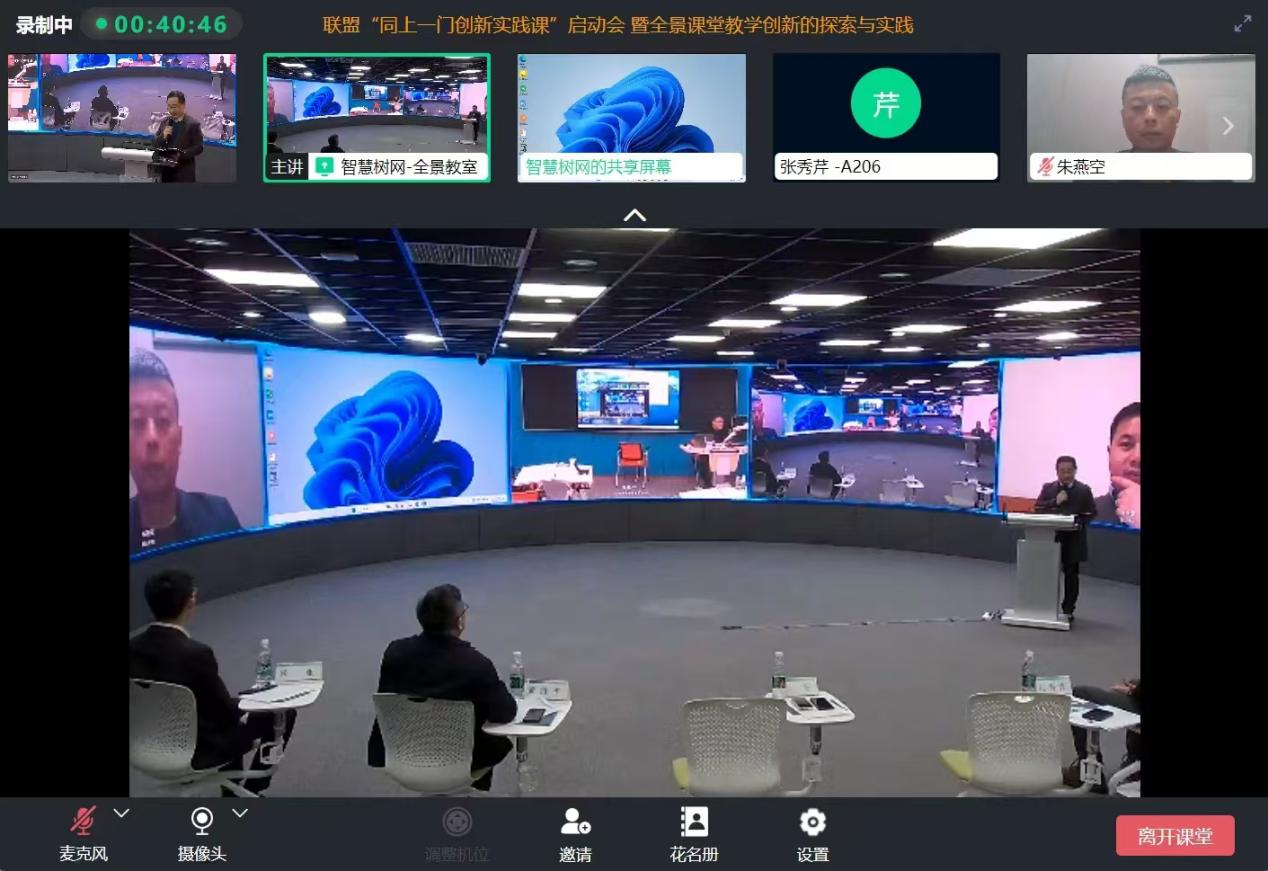 为顺应信息技术和人工智能技术发展大势,共同探讨未来课堂教学组织创新的无限可能性,进一步促进全国高等职业院校创新创业教育质量提升,11月19日19:00,由全国高等职业院校创新创业教育联盟(以下简称“联盟”)秘书处主办,上海卓越睿新数码科技股份有限公司(智慧树网)承办,浙江大学、子谦国际创业教育学院、华体会在线登录官网、金华职业技术大学、河北工业职业技术大学、哈尔滨职业技术大学等20多家单位共同策划实施的“同上一门创新实践课”系列直播活动启动会暨全景课堂教学创新的探索与实践分享活动,通过线上线下结合方式顺利举办。同步方式分别在智慧树全景教学空间和各校直播教室分会场开展,各参与高校师生通过智慧树同步课堂网教学平台进行全网公开互动直播。
