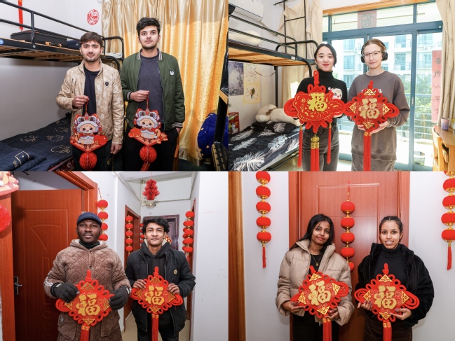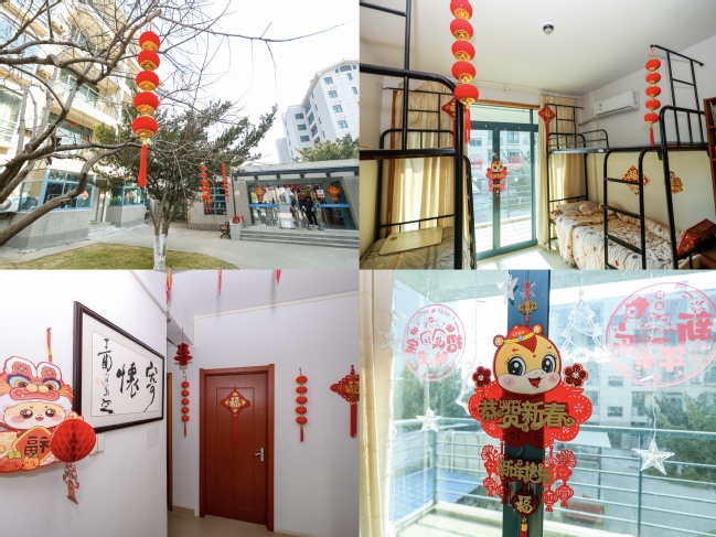 高宏彦向所有参与者表达了节日的祝福与期望,更亲自带领大家走访了每一间参赛宿舍,详细询问了留学生们的感受与收获。宿舍内,有的挂满了寓意吉祥的对联与窗花,有的则巧妙地将福字、年画与现代装饰元素相结合,创造出既传统又不失时尚感的居住环境。更有宿舍利用小灯笼、彩带等装饰品,营造出温馨而浓厚的节日氛围,让人仿佛置身于一个充满爱与希望的大家庭中。