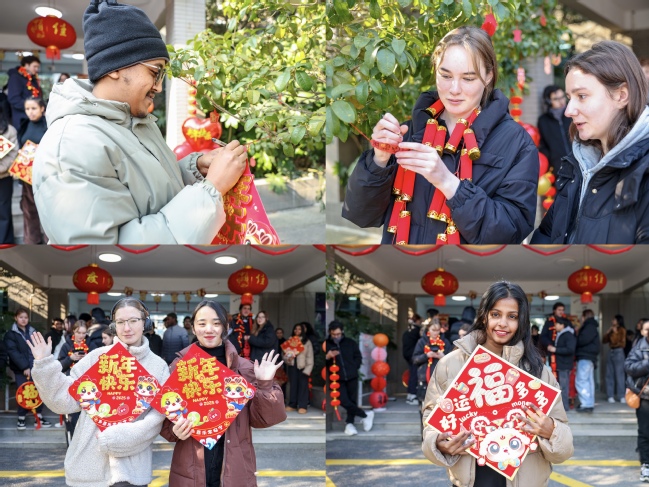 活动当天,整个国际教育学院宿舍楼被装点得焕然一新,红灯笼高挂,中国结错落有致,每一扇门扉、每一扇窗户都仿佛在诉说着中国年的故事,沐浴在一片喜庆与祥和的氛围中。在宿舍楼的一角,一棵心愿树被五彩斑斓的卡片装点得生机勃勃,来自不同国家与地区的留学生们纷纷在心愿树上写下自己对新年的美好祝福与对中国的深情寄语,字里行间流露出对中华文化的热爱,一同沉浸在这场文化盛宴之中。